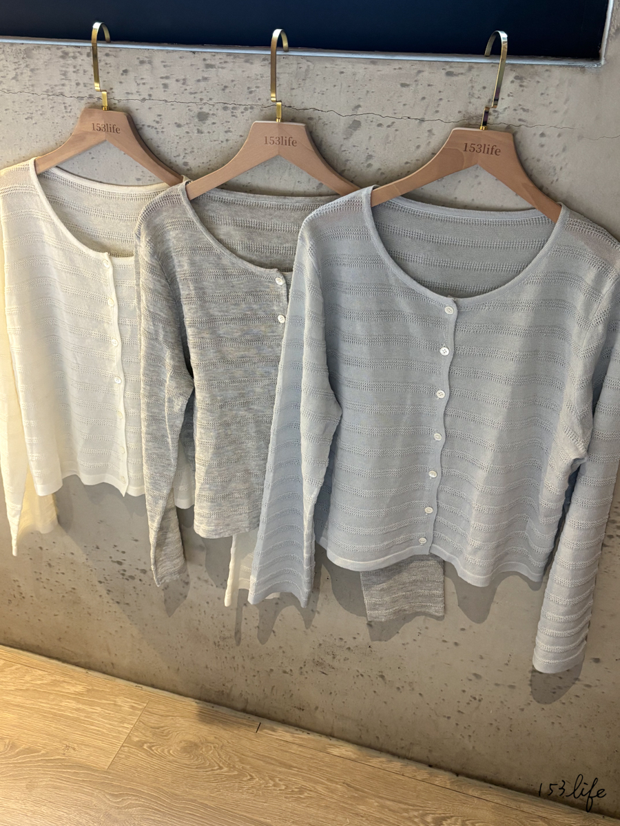 圓領鈕扣條紋簡約亞麻長袖罩衫(3色)