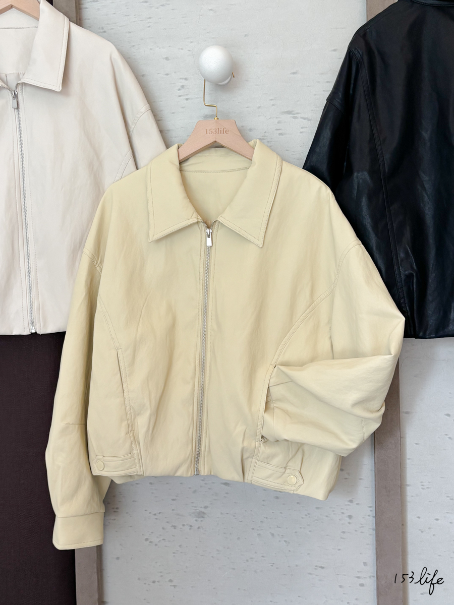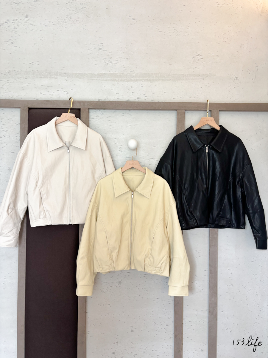 𝑙𝑎𝑑𝑦.翻領質感率性皮衣皮外套(3色)