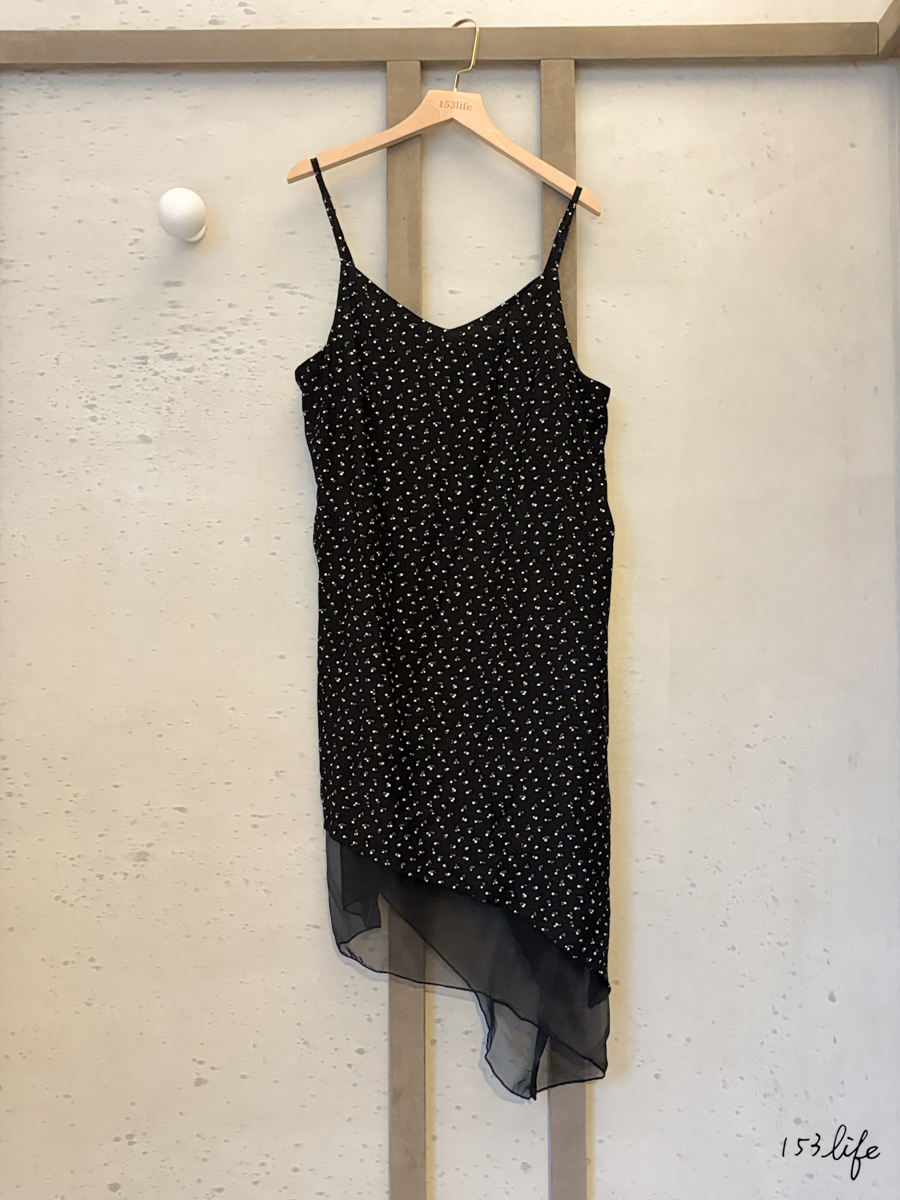 下擺不規則拼接碎花小洋裝肩帶可調(黑)