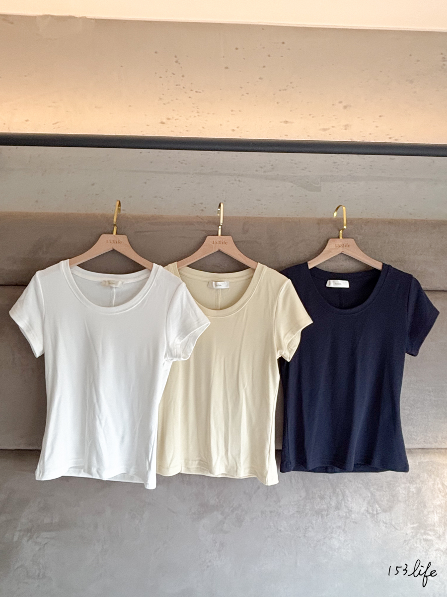 𝑙𝑎𝑑𝑦.圓領柔軟修身棉質短袖T恤(3色)