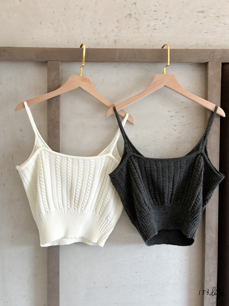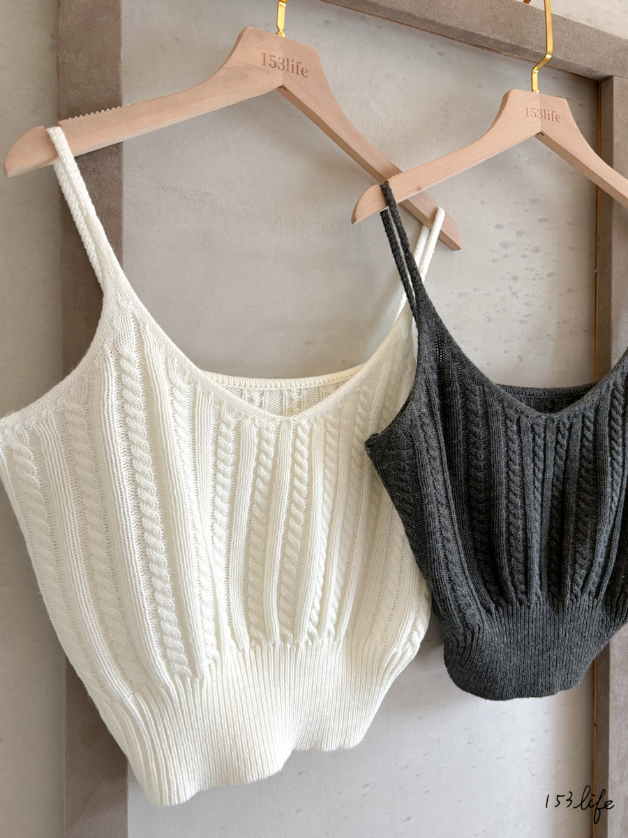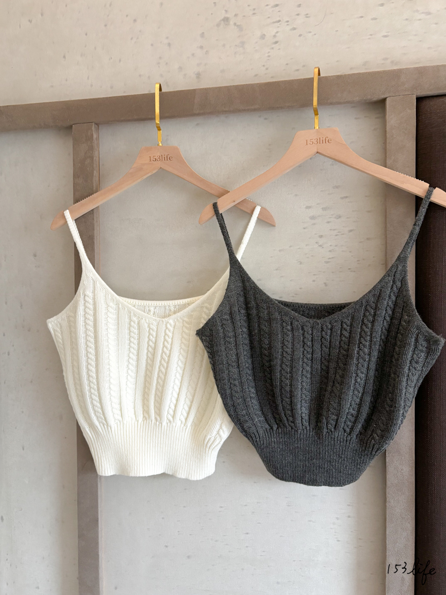 針織V領小麻花短板外搭背心(2色)